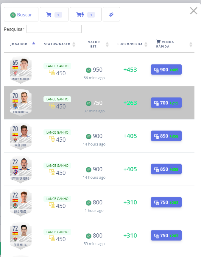 Encontre preço Futbin - Listas/Venda Automática